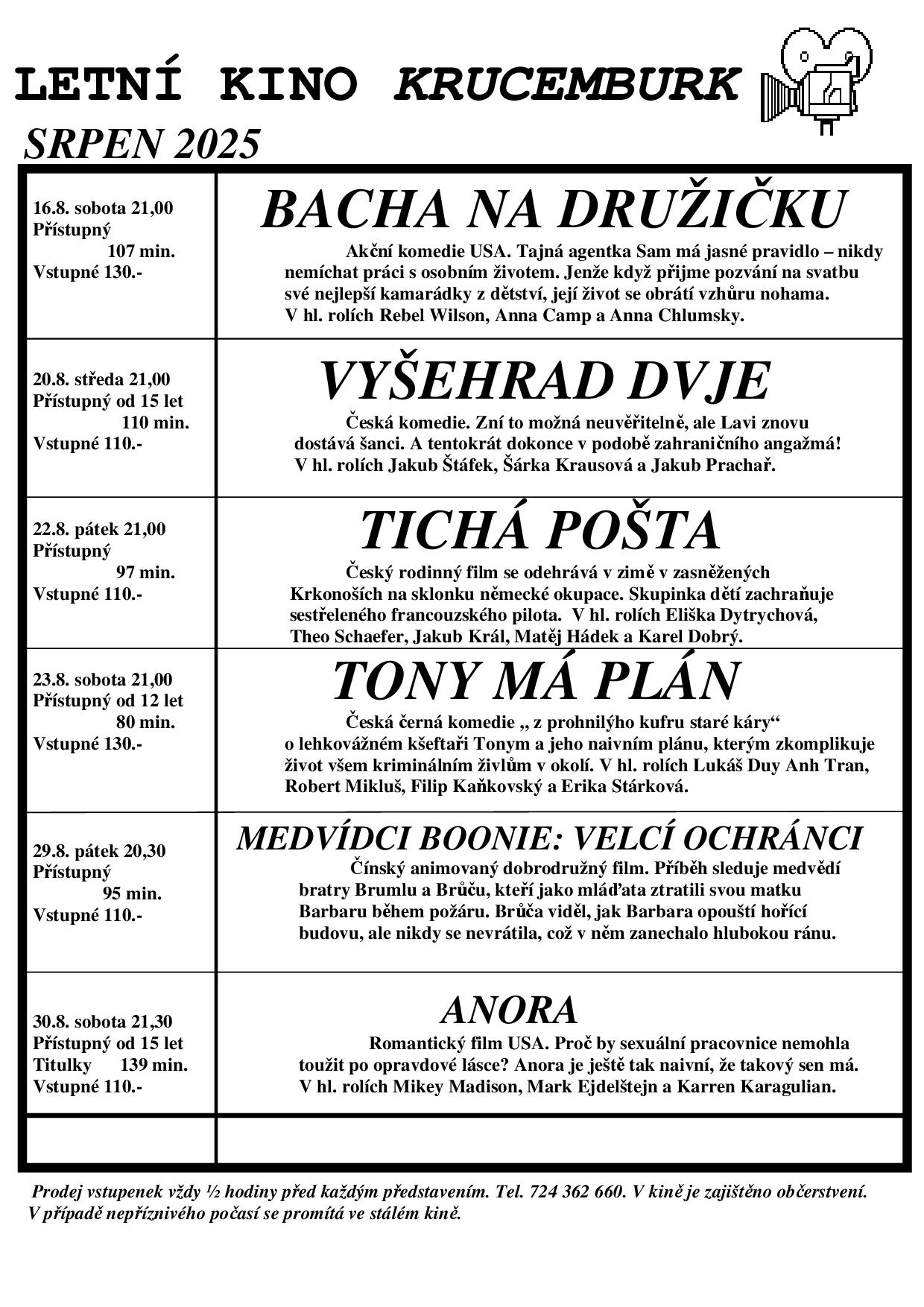 ☔ V případě nepříznivého počasí se promítá ve stálém kině.