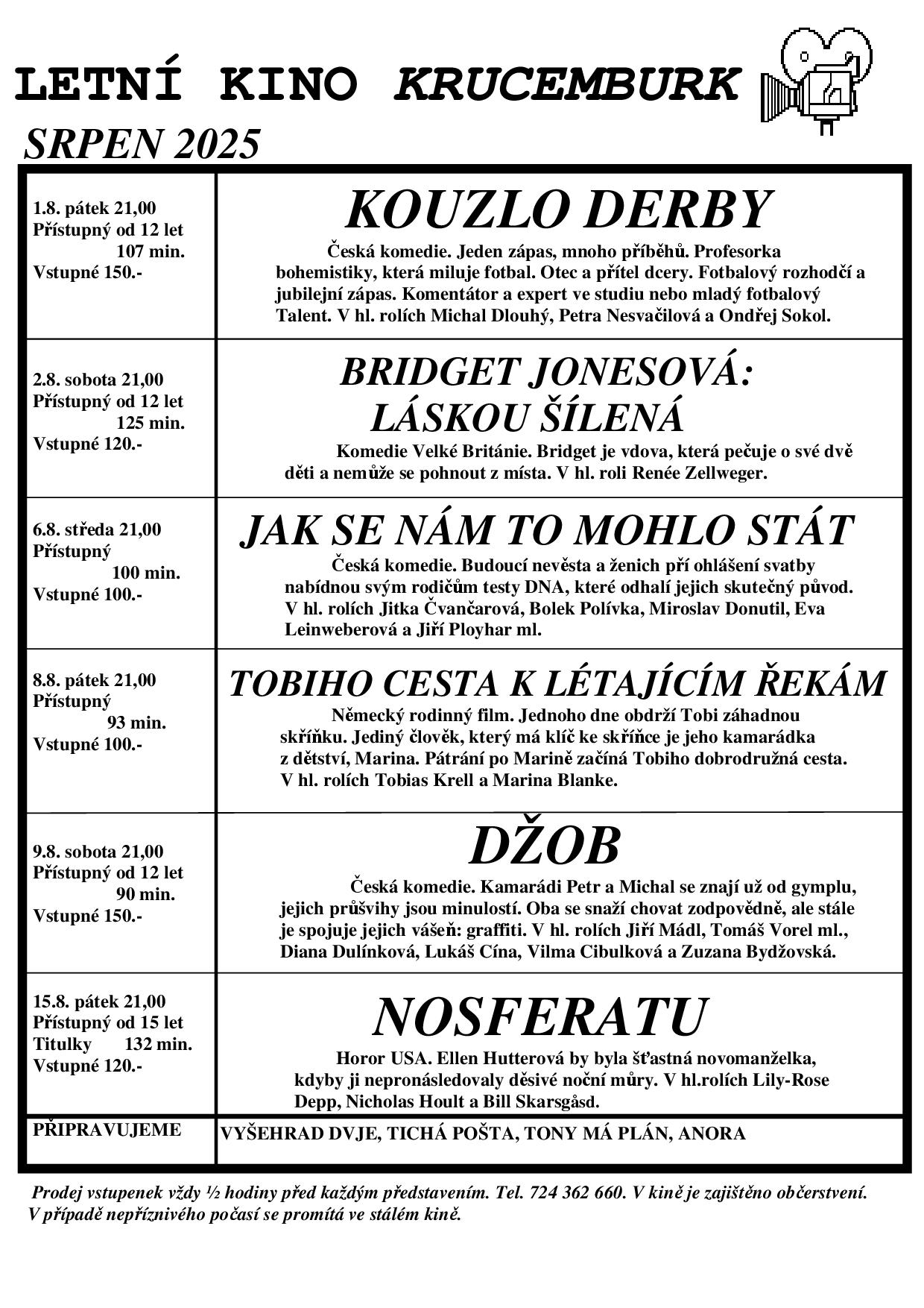 🕒 Prodej vstupenek: vždy půl hodiny před začátkem