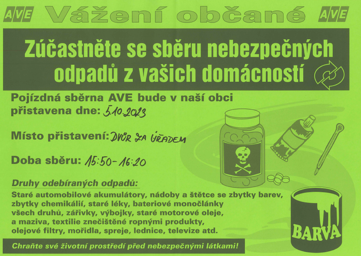 Upozornění na blížící se splatnost poplatku za svoz a likvidaci odpadu Vystaveno: 20.10.2023 Vystavil: Superadmin Superadmin Oznámení úřadu Přílohy neb.odpad říjen 2023.png Obrázek, 1.34 MB Stáhnout Podrobnosti Datum vystavení: 20.10.2023