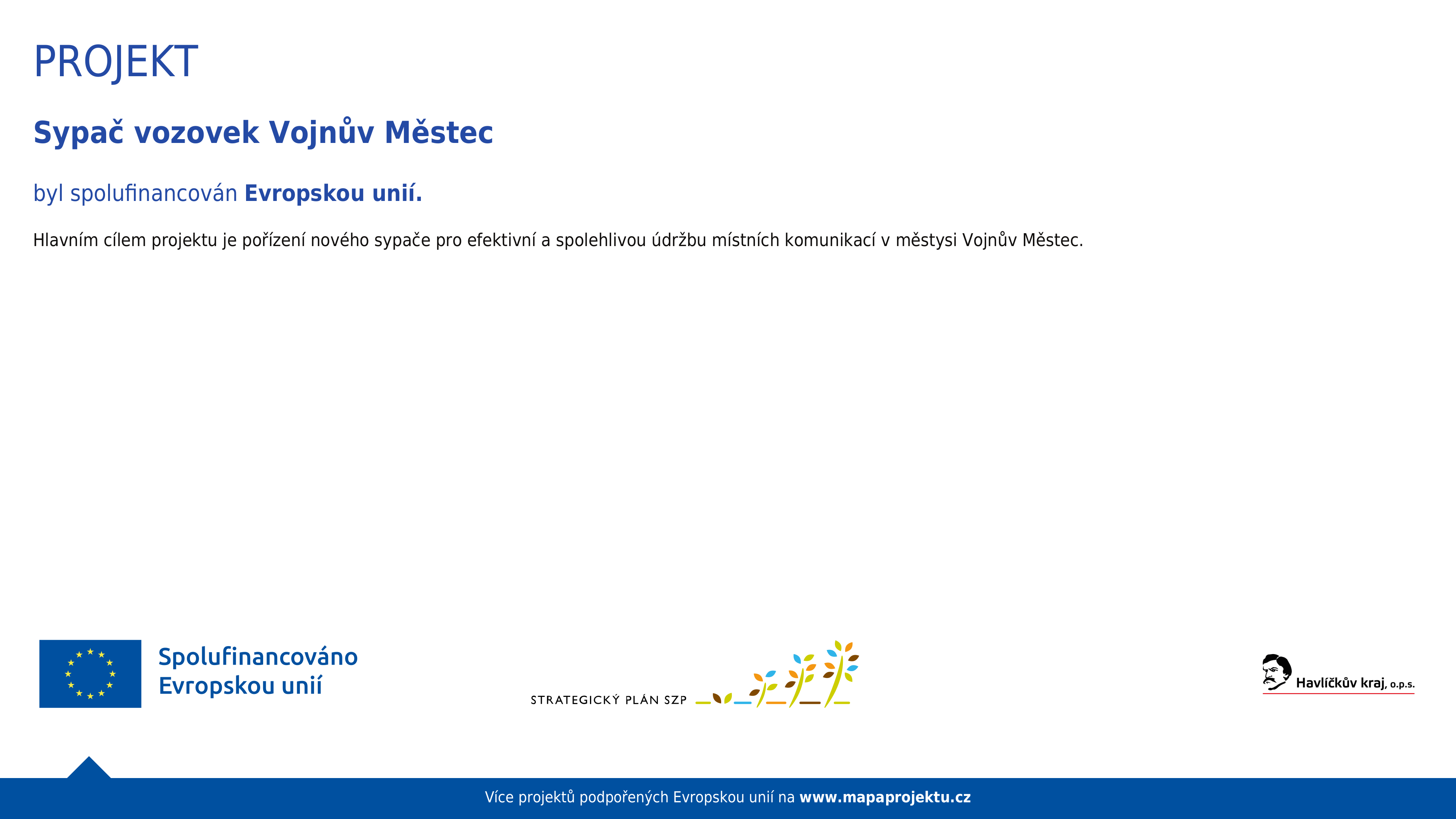 Sypač vozovek Vojnův Městec Vystaveno: 23.7.2025 Vystavil: Tomáš Mocek Smlouvy a dohody Přílohy propagace_MASHk_Vojnův Městec_tisk_web.pdf PDF, 94.50 KB Stáhnout publicita_Vojnův Městec_web.png Obrázek, 168.87 KB Stáhnout Podrobnosti Datum vystavení: 23.7.2025