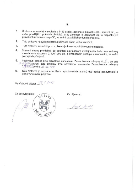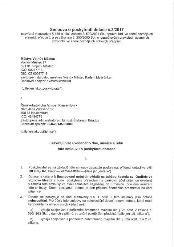 uzavřená mezi Městysem Vojnův Městec a Římskokatolickou farností Krucemburk
