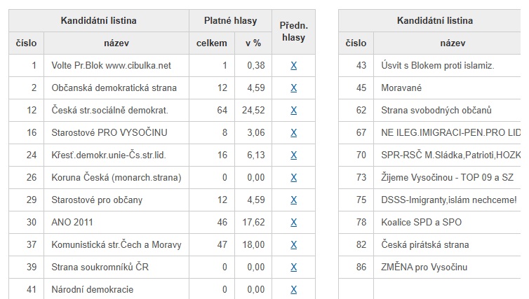 Tabulka: Výsledky hlasování za územní celky – Obec Vojnův Městec – souhrnné informace